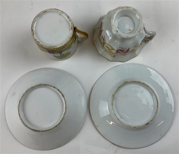 Manifattura del secolo XIX. Lotto composto da cinque tazze con piattino in porc