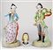 Manifatture diverse. Lotto composto da due basi per lampada in porcellana raffiguranti gentiluomo e gentildonna con profili in oro, uniti ad un sigillo di gusto Liberty a busto femminile e applicazioni, reca iscrizione al retro "Salvini Italia Brevettato" (difetti)