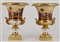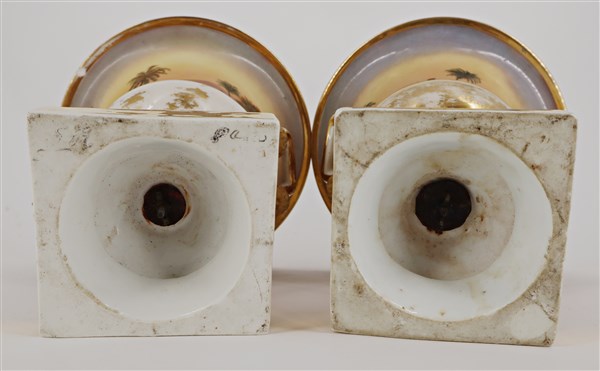 Manifattura del secolo XIX. Coppia di vasi biansati in porcellana decorata in p