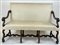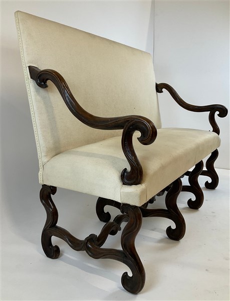 Divano in noce intagliato ad ossa di montone con braccioli, gambe e traverse di