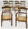 Lotto composto da due poltrone e sei sedie in noce intagliato con braccioli ter