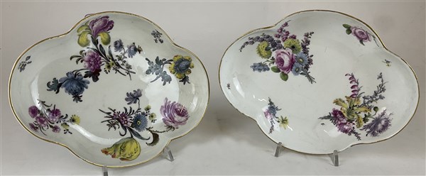 Manifattura di Meissen, secolo XVIII. Coppia di ciotole quadrilobate in porcell