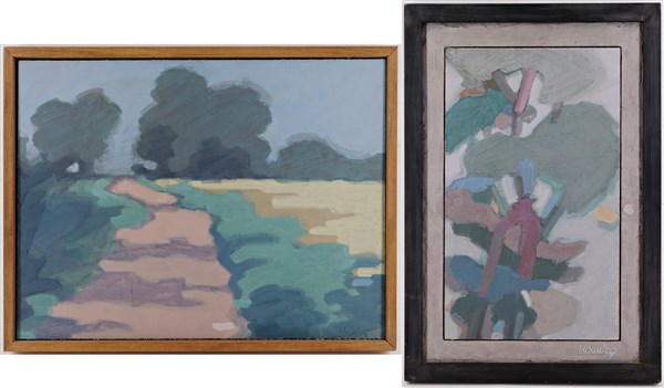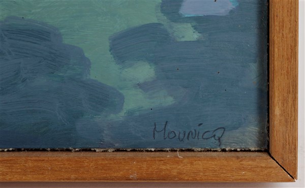 Ignoto, lotto composto da due dipinti a tecnica mista su cartone pressato (cm 28,5x37 e cm 32,5x20,5) firmati Mounicq in basso, in cornici (lievi difetti)