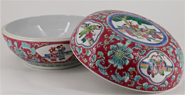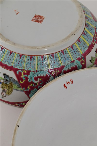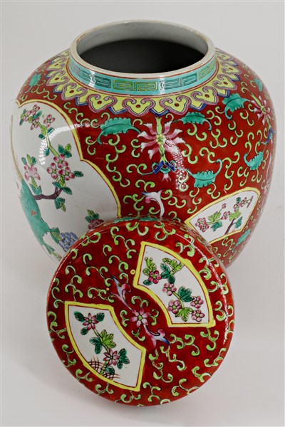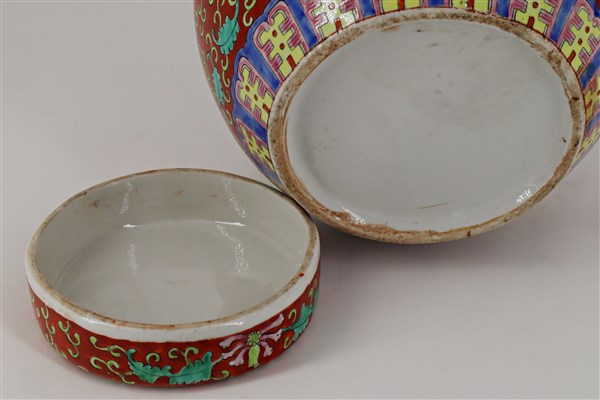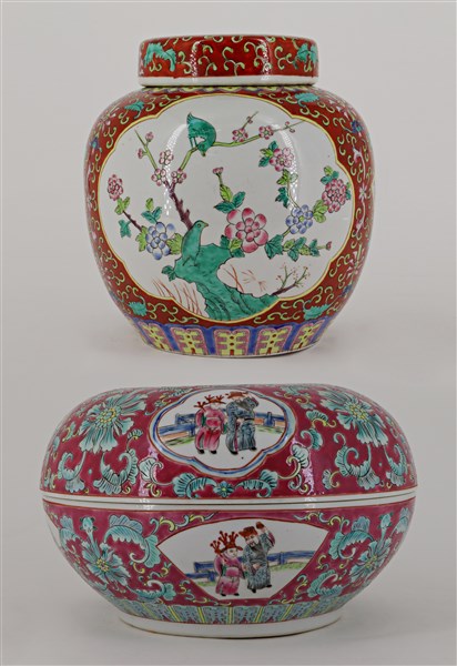 Lotto composto da un contenitore ed un vaso con coperchio in porcellana cinese