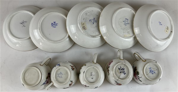 Manifattura di Sèvres, secolo XVIII-XIX. Gruppo di cinque tazze con piattini in