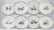 Manifattura del secolo XIX. Gruppo di otto piatti in porcellana decorata "en gr