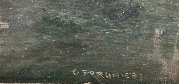 Lotto composto da un olio su compensato raffigurante Mulino e firmato Forghieri