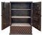 Armadio-cassaforte da centro in ferro bugnato con elementi a fiore angolari, ch