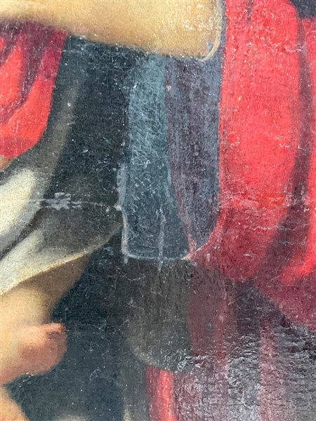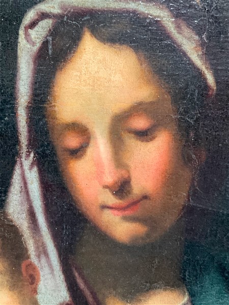Ignoto, antico dipinto raffigurante "Sacra Famiglia con San Giovannino" olio su