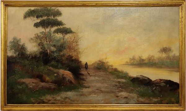 Lotto composto da tre "Paesaggi" della seconda metà del secolo XIX ad olio su tela. Firme non pertinenti in basso a destra