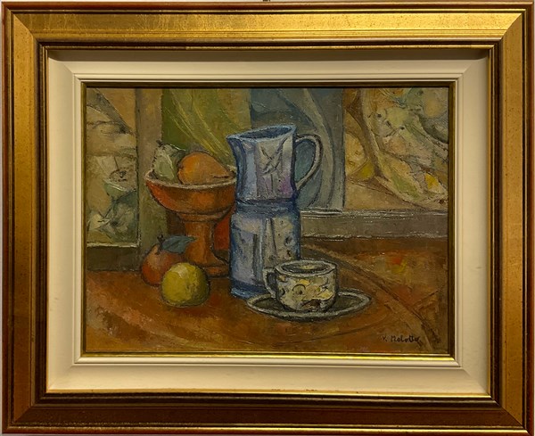 Vito Melotto "Natura morta con tazzina e brocca" olio su tela (cm 29x39) firmato
