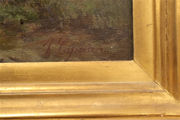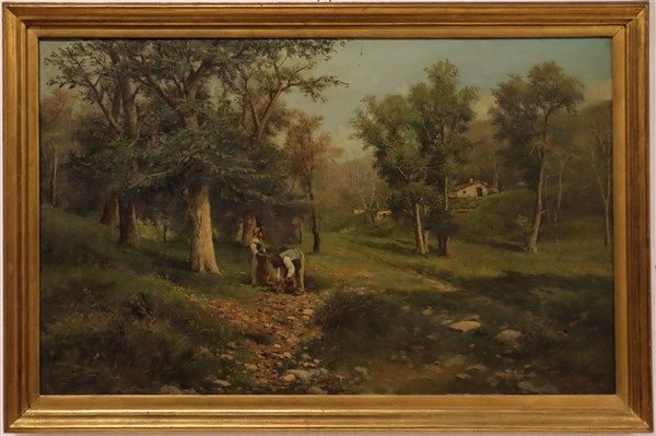 Francesco Capuano "Paesaggio con pastori" olio su tela (cm 51,5x84) Firmato in b