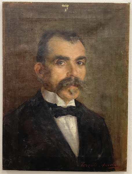 Lotto 1848 | Dipinto raffigurante uomo con baffi (cm 59x44) (difetti)