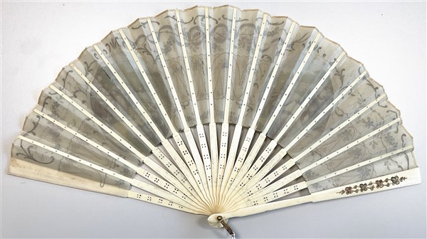 Arte del secolo XIX. Lotto di tre ventagli con stecche in avorio inciso, trafor