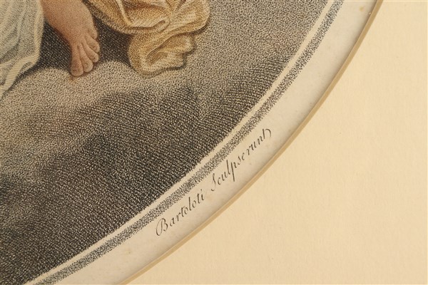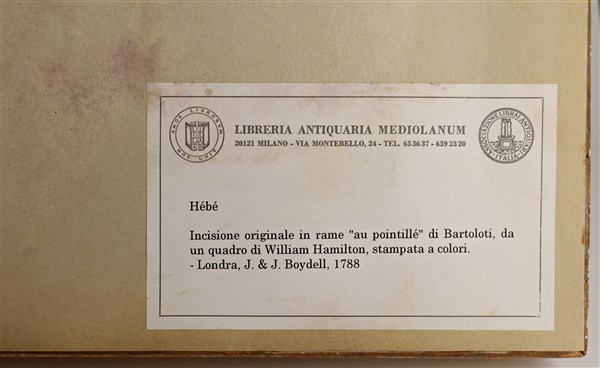 Incisione acquerellata raffigurante Ebe e l'aquila di Giove. Secolo XVIII (cm 3