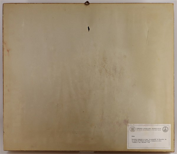 Incisione acquerellata raffigurante Ebe e l'aquila di Giove. Secolo XVIII (cm 33x29) In cornice (difetti)