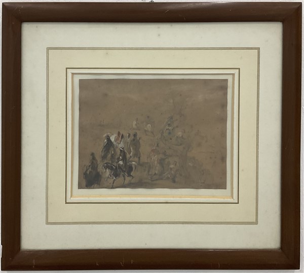 Ignoto del secolo XIX "Scena orientalista con beduini" tecnica mista (cm 19x2
