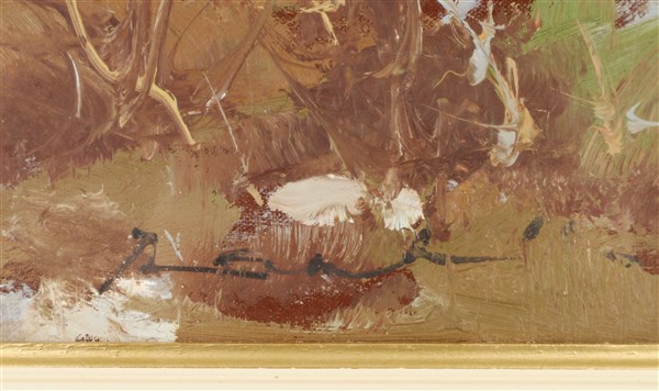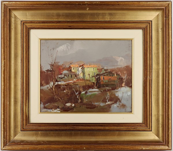 Giulio Servolini "Paesaggio autunnale con case" olio su tela (cm 24x30) Firmato