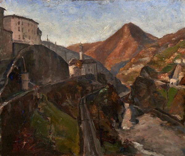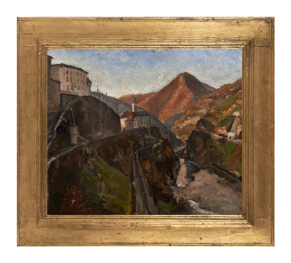 Sedrina (Valbrembana), 1933, olio su compensato (cm 55x65) firmato e datato in basso a destra. al retro: locato, firmato e datato (difetti)
