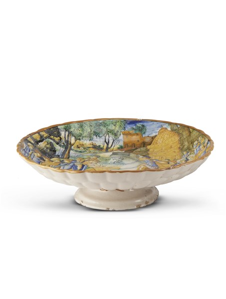 Manifattura del secolo XIX, nei modi urbinati di Orazio Fontana. Alzata in maio