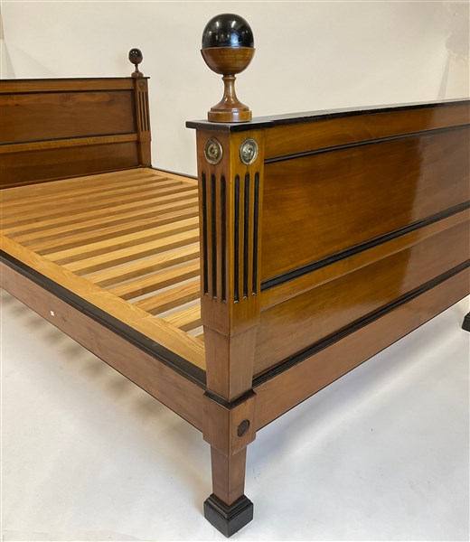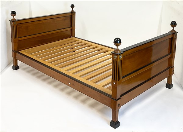 Letto in ciliegio e parzialmente ebanizzato con montanti scanalati cimati da pi
