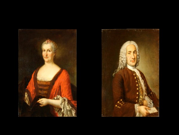Firmato, datato. Coppia di dipinti olio su tela raff. ''RITRATTI DI PERSONAGGI''. Inizi XIX secolo. Mis. Lung. cm. 63,5 Alt. cm. 100,5 ca.