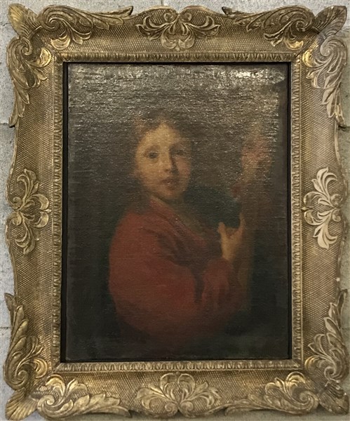 Scuola olandese "Gesù Bambino" olio su tela (cm 59,5x44,5) in cornice del seco