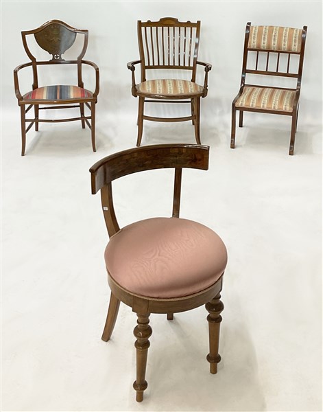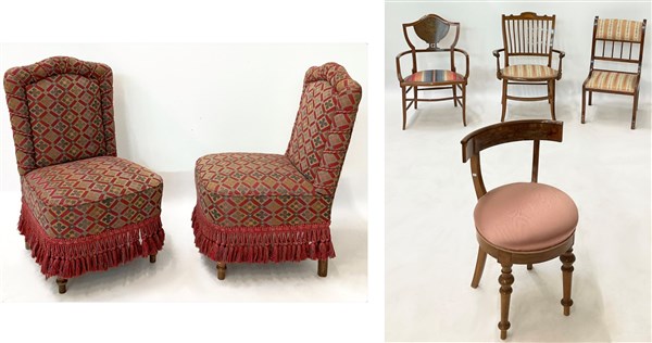 Lotto composto da una coppia di poltroncine da camera e quattro sedie per bambi
