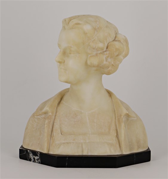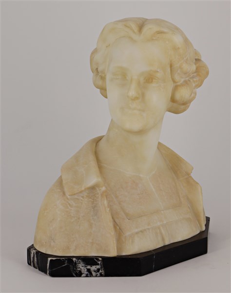 Scultore del secolo XIX Mezzobusto di gentildonna in alabastro su base in marmo