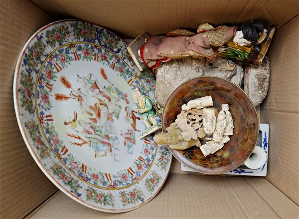 Cartone contente diversi oggetti in materiali diversi Cina e Giappone, secolo X
