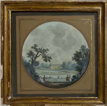 Scuola del nord Europa dell'inizio del secolo XIX "Paesaggio con parco e figur