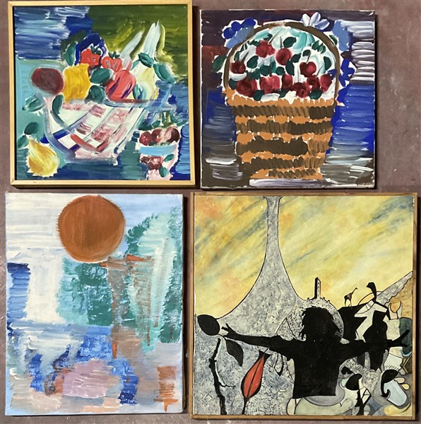 Lotto composto da sei tecniche miste su tela, cinque su compensato e un piccolo arazzo di soggetto astratto, di soggetto, autore e misure diverse (misura max cm 80x60), dieci firmati, tre in cornice
