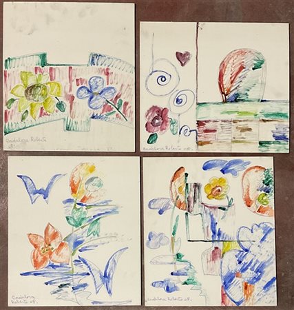 Lotto composto da sei tecniche miste su tela, cinque su compensato e un piccolo