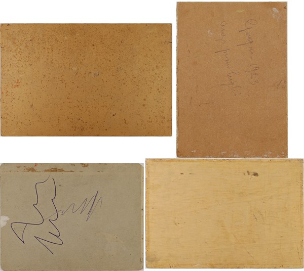 Lotto composto da quattro "Paesaggi" ad olio su diversi ssupporti, di diverse m