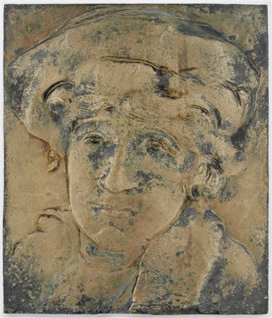 Oreste Zampieri "Ritratto di donna con cappello" Bassorilievo in bronzo (cm 37x