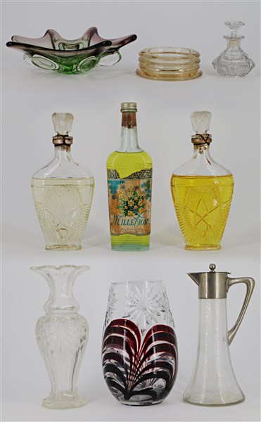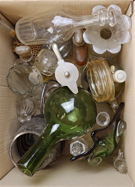 Cartone contenente numerosi oggetti in vetro di fatture ed epoche differenti (difetti)