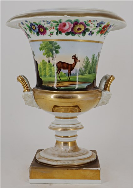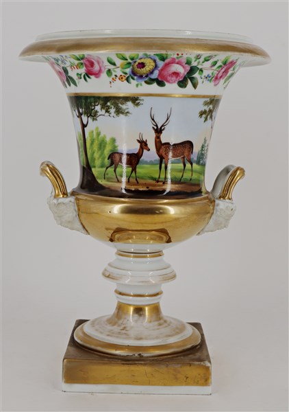 Manifattura del secolo XIX, vaso in porcellana dipinto in policromia e oro con