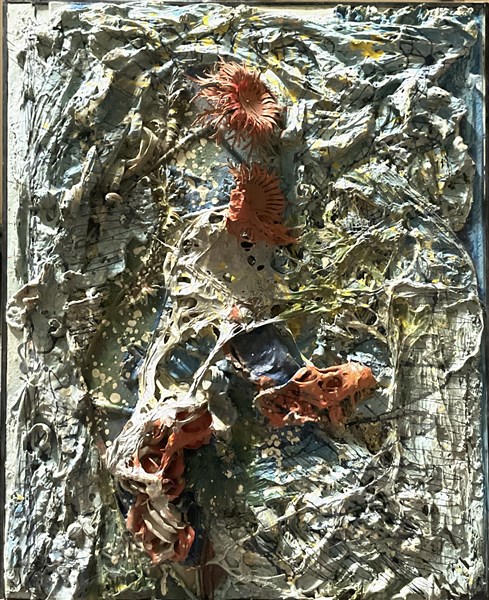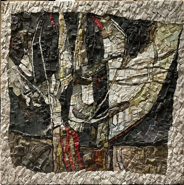 Lotto composto da un mosaico su tavola di soggetto astratto (cm 70x70) e una tecnica mista materica su compensato (cm 70x57) una in cornice
