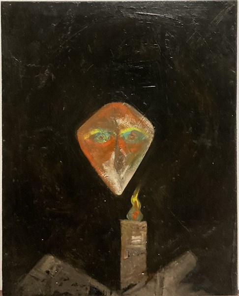 Lotto composto da un olio su tela (cm 119x80) firmato Langkofel e datato 78 in basso a destra e un olio su compensato raffigurante candela e volto non firmato (cm 82x62)