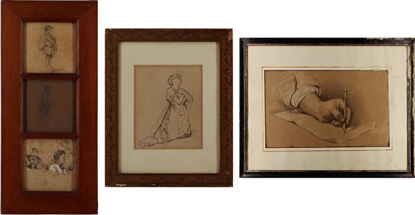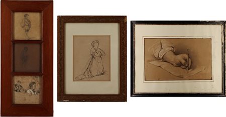 Lotto composto da cinque disegni a tecnica mista su carta,di diversi autori, misure e soggetti.