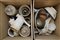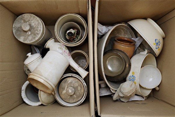 Lotto di due cartoni contenenti numerosi oggetti in ceramica e terraglia di fat
