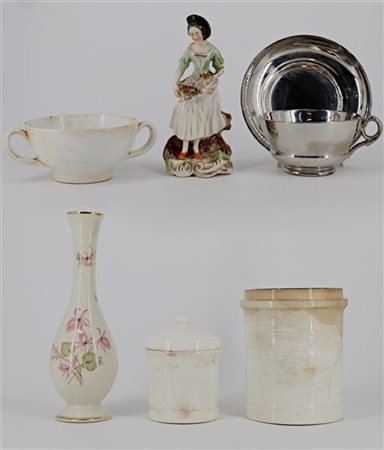 Lotto di due cartoni contenenti numerosi oggetti in ceramica e terraglia di fatture ed epoche differenti (difetti)