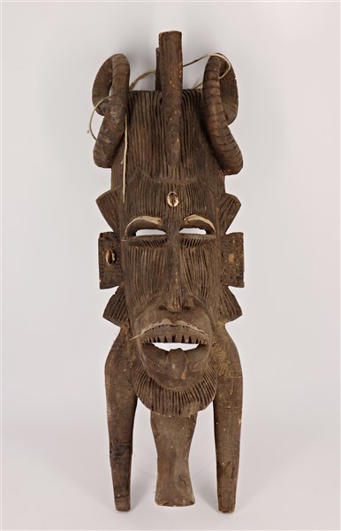 Lotto 2255 | Arte Africana, maschera rituale in legno intagliato e scolpito con inserti di m