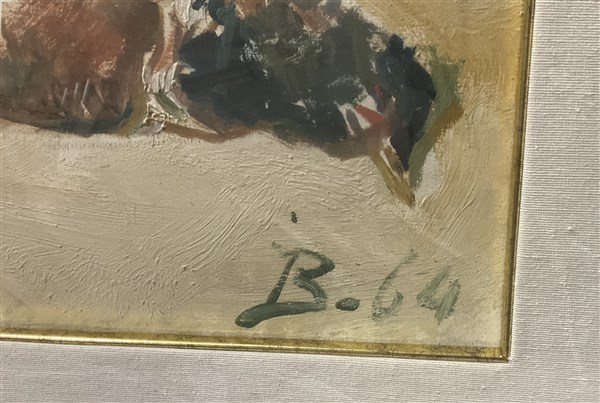 Ignoto "Cacciagione con fagiani" 1964, olio su tela (cm 70x93) siglato B. e dat