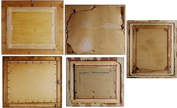 Lotto composto da due oli su tela, due su compensato e due su carta raffigurant