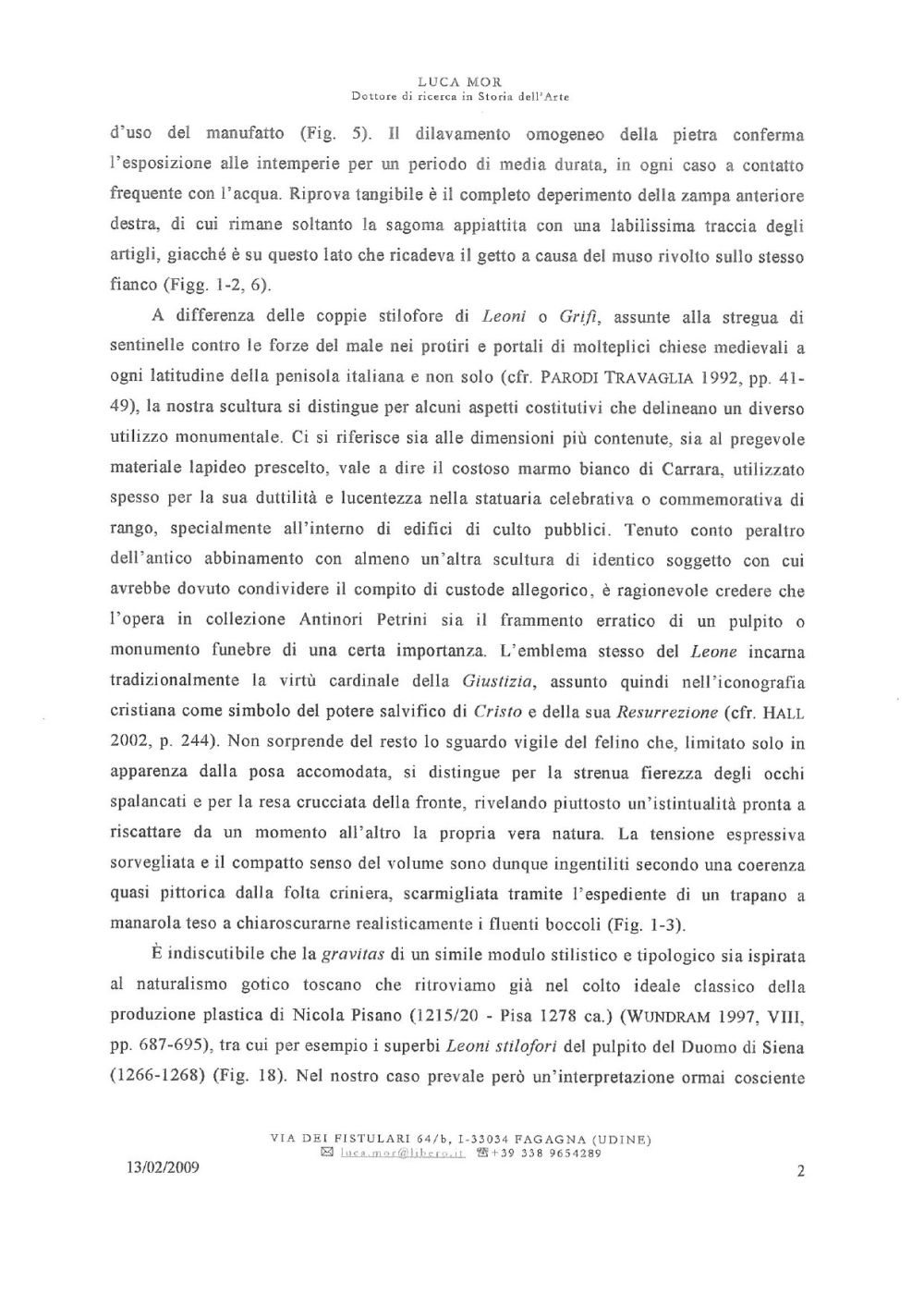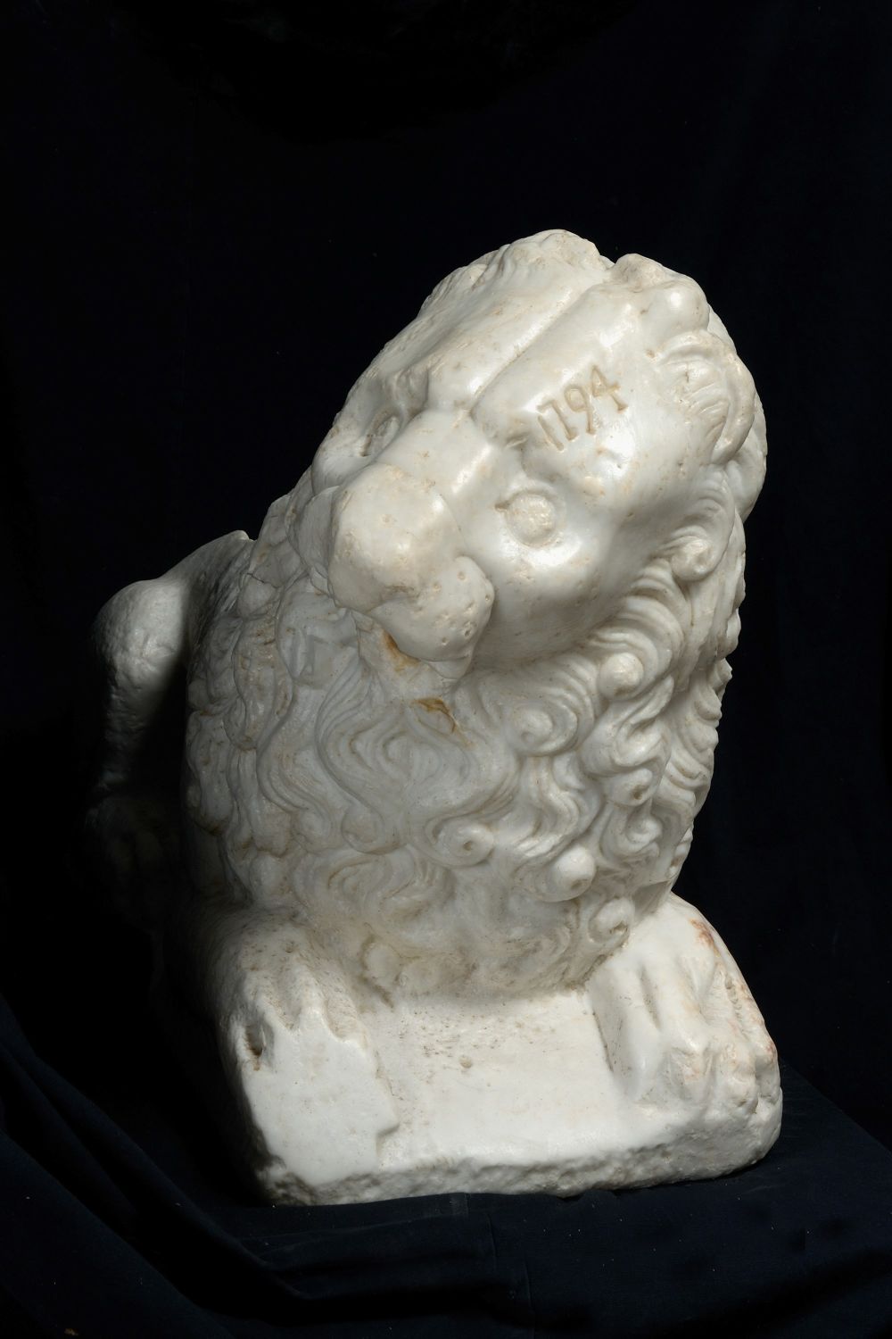Tino di Camaino (bottega di) (Siena, 1285 circa - Napoli, 1337 circa) Leone stiloforo in marmo prima metà del XIV secolo Altezza x larghezza x profondità: 55 x 77 x 35 cm.