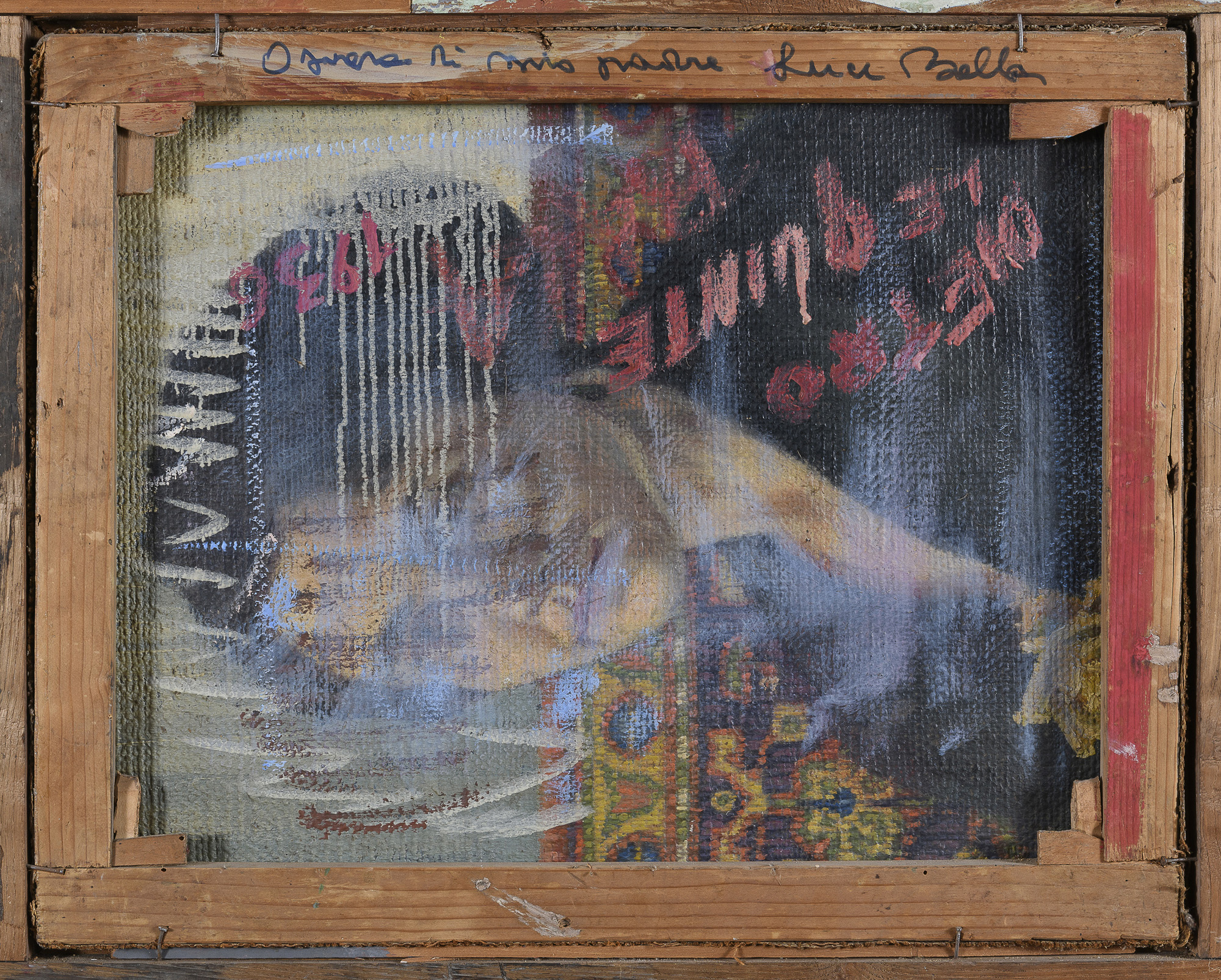 Iscrizione 'Dietro/le quinte/Balla/1936' e un volto femminile, al retro