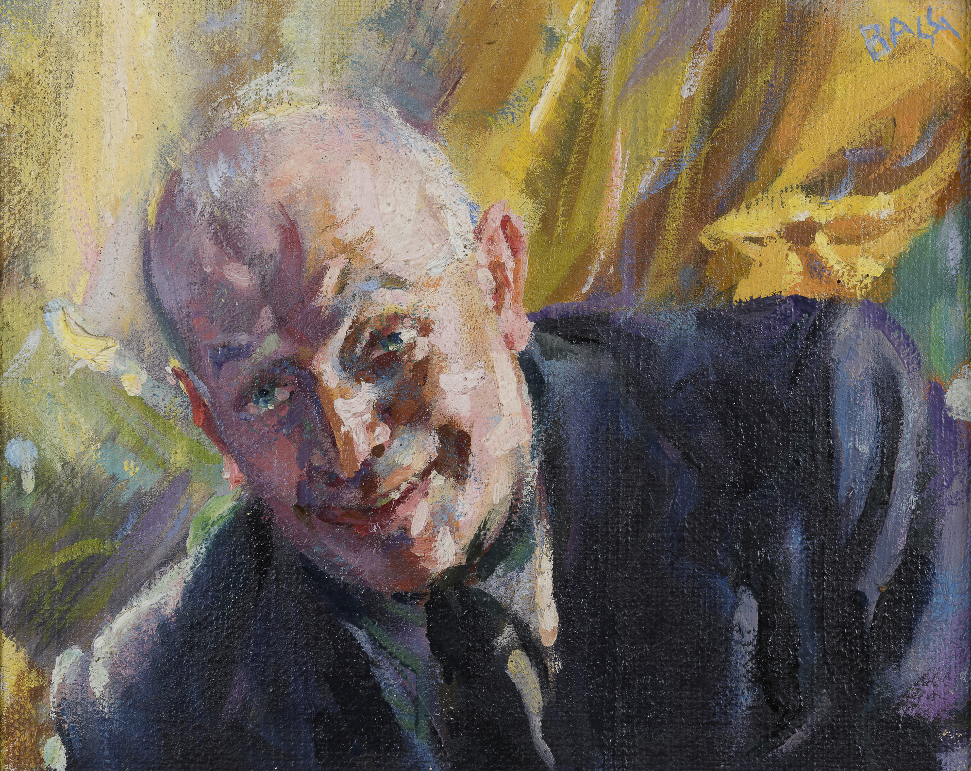 Lo studio di Balla si va ad arricchire di tele dove appaiono le giovani figlie da sole o in compagnia, le amiche del piano di sopra, i vecchi amici che lo vanno a trovare, i vasi di fiori e la frutta sul tavolo, la nuda realtà che vede dalla finestra o sulle rive del fiume Tevere, i pini di Grottarossa appena fuori Roma o i giardini di viale Mazzini, la luce di Villa Borghese. Ogni singolo oggetto, ogni particolare visione diventa una fonte luminosa da tradurre coi pennelli in opere d’arte: 'tutto diventa arte - NUOVA - immutabile'. In particolare ora nel 1936 e quattro anni dopo nel 1940, troviamo Giacomo Balla intento a ritrarre quello che era il suo postino mentre abitava nella casa ai Parioli a via Paisiello, impiegato ora alla posta di viale Mazzini nel quartiere Della Vittoria, il roseo e rubicondo Chiappelli. In questa tela del 1936, il Chiappelli fuoriesce da dietro le quinte, come è scritto nel retro del ritratto: è un attore che alzando la tela gialla del sipario posta alle sue spalle, si lancia verso lo spettatore con un furbesco sorriso e uno sguardo giulivo. Dopo aver posato anche per Il Giocondo con alle spalle l’Autocaffè di Balla, il Chiappelli continua a frequentare i Balla: nell’inverno del 1953 presenta il dottor Leppo, che si occuperà della salute del pittore. L’opera Dietro le quinte dipinta da Balla nel 1936 proviene dal corniciaio romano Gallotti che realizzava per la famiglia Balla le cornici