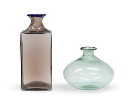 COPPIA DI BOTTIGLIE IN VETRO, VENINI MURANO ANNI '80