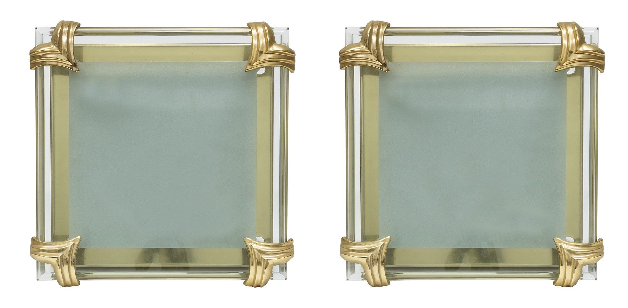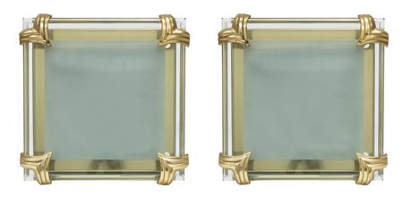 COPPIA DI APPLIQUES IN VETRO E OTTONE, ANNI '80